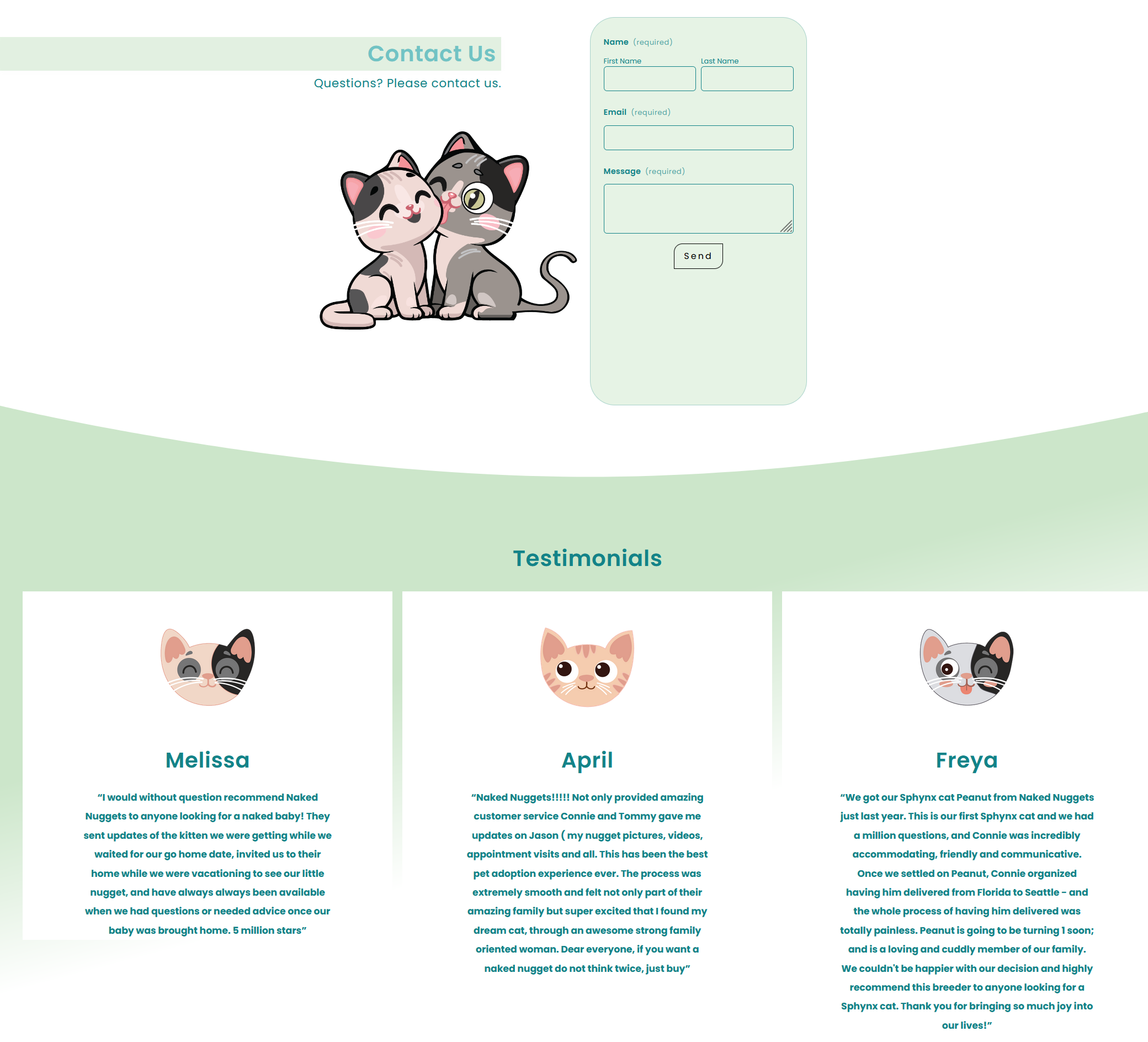 The client wanted a logo that represented all of her personal sphinx cats, with a playful nod to the "Nuggets" in her brand name. I created the design in Adobe Illustrator, using vector graphics for a cleaner, more versatile result compared to logos made in Procreate.